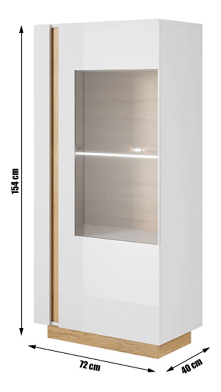 Vitrína Cethos Typ 72 (bílá + dub grandson) je prvotřídní volba pro ty, kdo hledají stylové a funkční řešení pro své domácnosti. Vitrína má výšku 154 cm a hloubku 40 cm. Je vyrobena z kvalitního materiálu - DTD laminovaného s ABS hranami. Vitrína je k dispozici v bílém, dubovém grandzone nebo bílém lesku. Se 3 policemi a nosností skleněné police až 3 kg poskytuje dostatek prostoru pro uspořádání a zobrazení vašich oblíbených předmětů. Bez úchytek a tloušťce materiálu 16 mm má vitrína moderní a elegantní vzhled. Vitirína Cethos Typ 72 se dodává v demontu.
