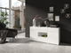 Elegantní komoda Della rozdělená na tři části. V pravé a levé části se nachází skřínky s jednou policí. Střední část disponuje zásuvkami. Dolní zásuvka má se otevírá pomocí výklopných dvířek. Vhodná do obývacího pokoje, pracovny i na recepci. Mnoho úložného prostoru v moderním provedení série Della. LED osvětlení není součástí balení.