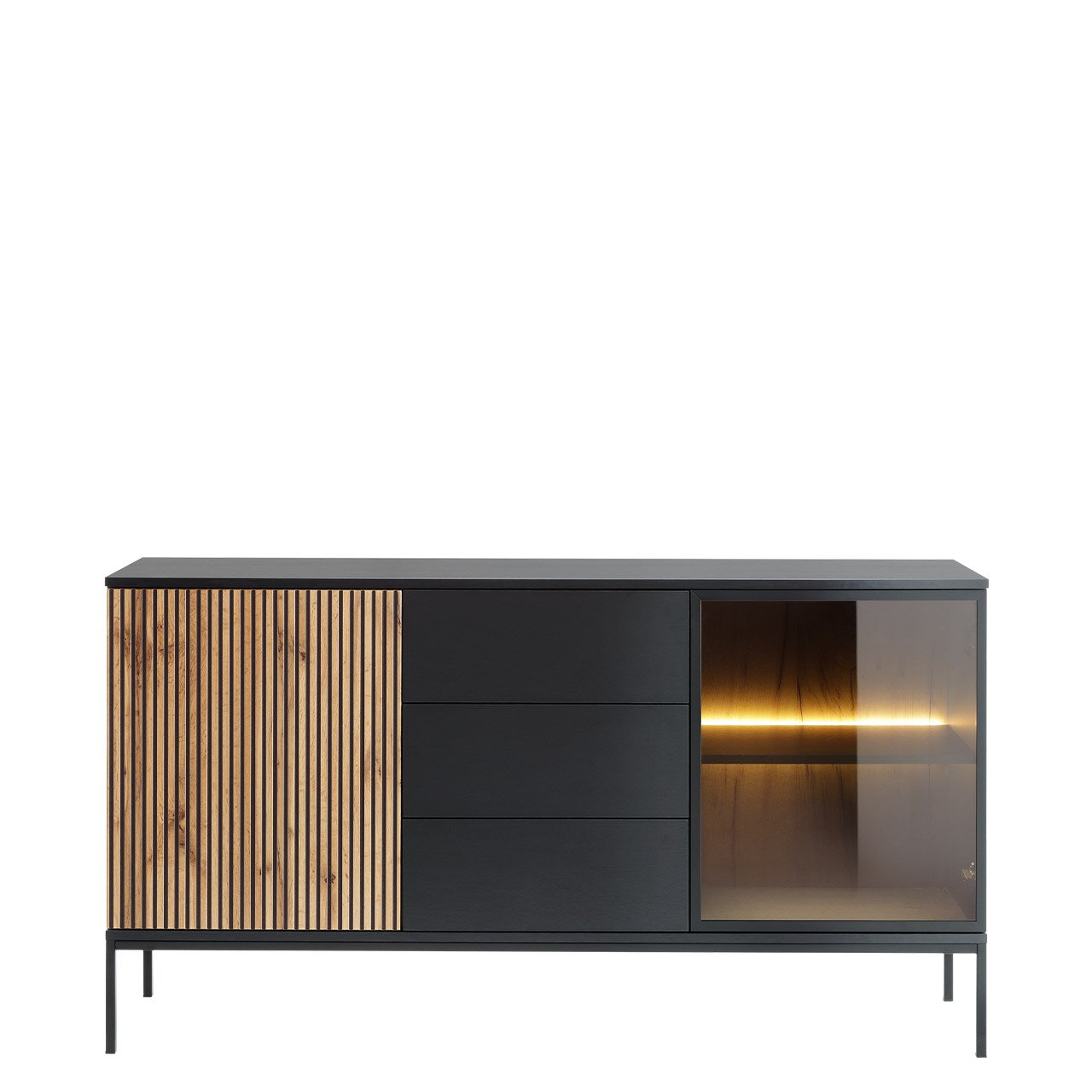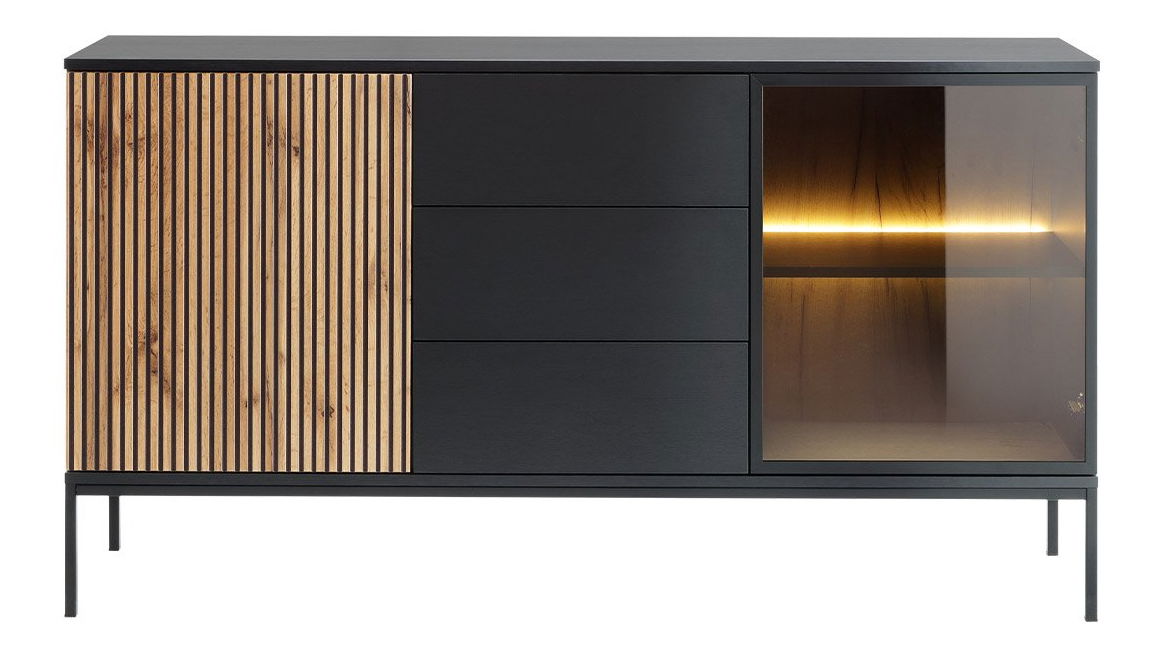 Vitrína Dernas KSZ154 (černý grafit + dub wotan) (se žlutým LED osvětlením)