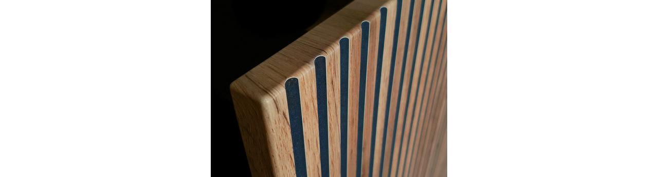 Čela: 18 mm tlustá MDF deska + 18 mm tlustý hliníkový rám + tvrzené sklo
