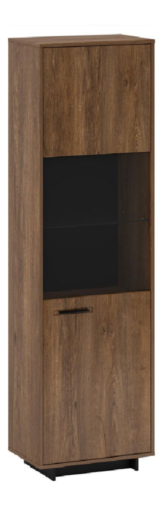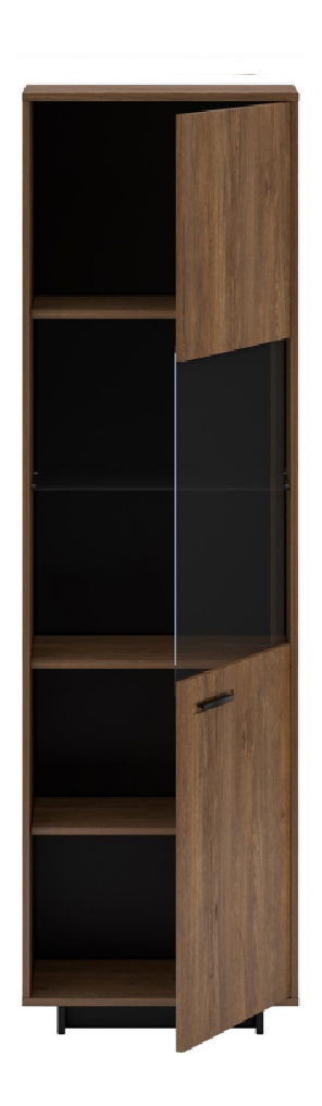 ZobrazitVitrína Diram A2 (dub bolzano + černá) (P) o výšce 201,2 cm a hloubce 38 cm je vyrobena z laminovaného DTD/MDF/skla o tloušťce materiálu 16 mm. Spodní prostor se nachází 5 cm od podlahy. Vitrína obsahuje jednu dveře a 3 police z materiálu DTD a 1 skleněnou polici. Kovová úchytka a podstavec dodávají vitríně moderní vzhled. Tato vitrína není vybavena LED osvětlením, nicméně její jednodveřový policový design je ideální pro exponování a uchovávání různých předmětů.