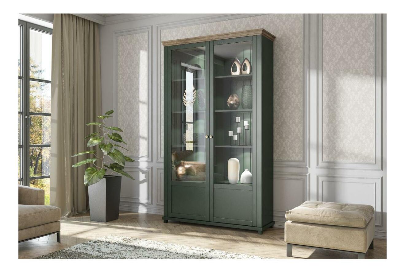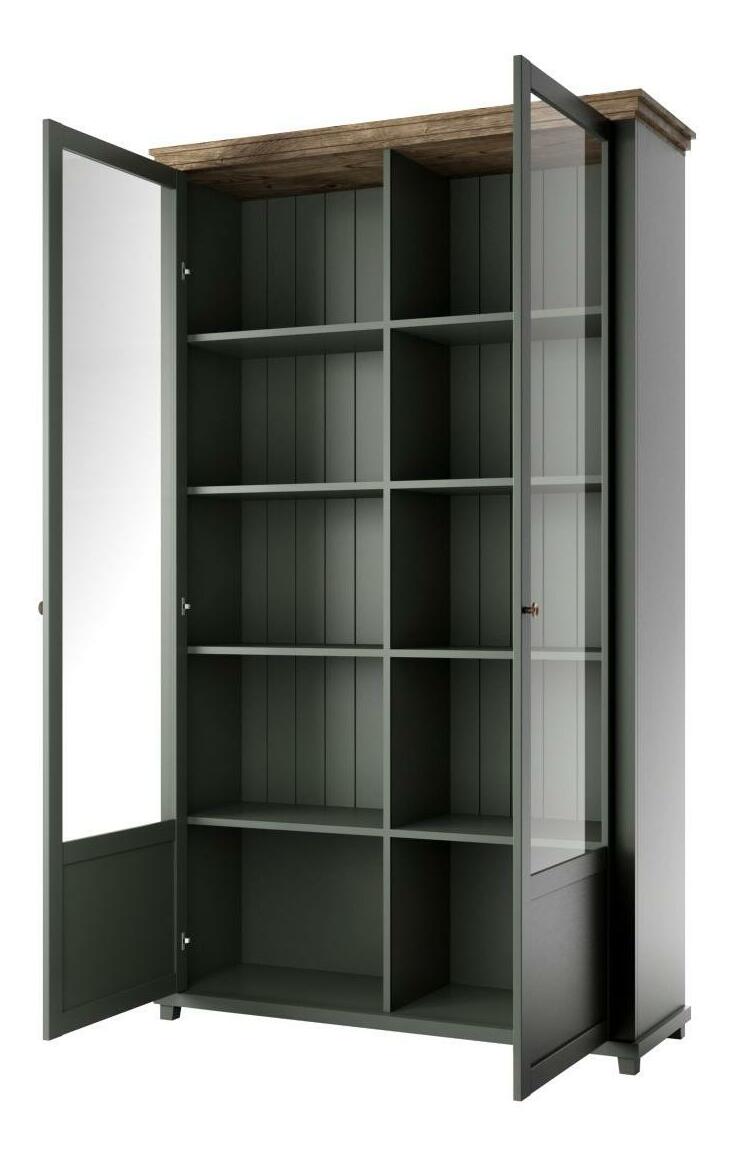 Vitrína Elvina Typ 13 (tmavě zelená + dub lefkas)