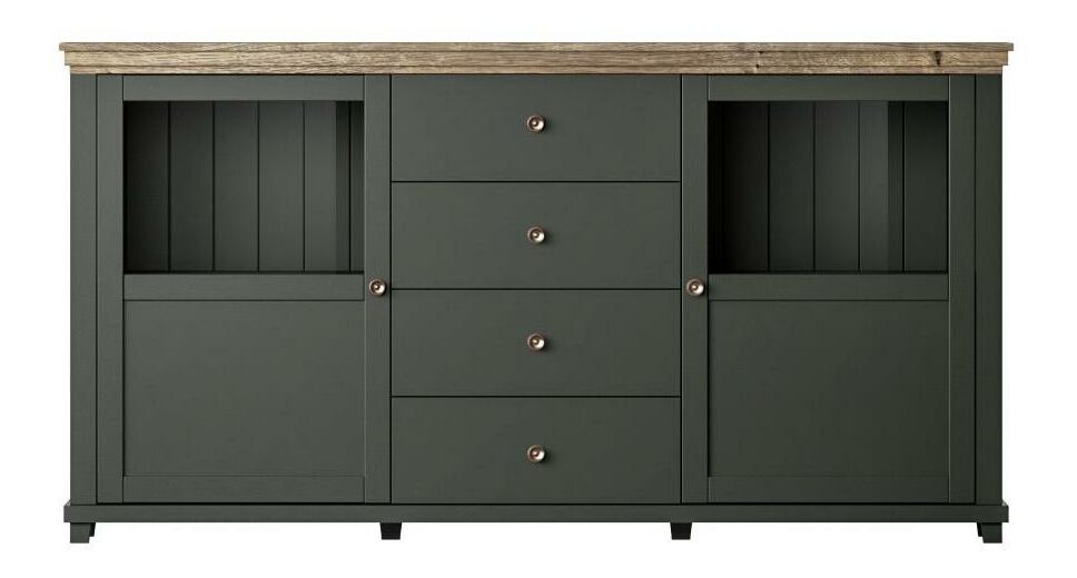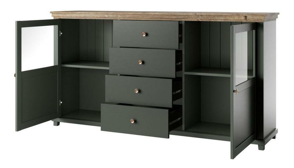 Okouzlující modelová řada Elvina ve venkovském stylu. Přitažlivé barevné provedení v kombinaci tmavozelené a dubu lefkas, vytvoří v interiéru pocit optimismu a harmonie. Je snadno kombinovatelný s přírodními materiály.