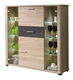 Vitrína Fishburn F2 (sonoma + grafit) o výšce 132 cm a hloubce 42 cm je dokonalým doplňkem pro každý domov. Její design z modelové řady Fishburn upoutá vaši pozornost na první pohled. Tato moderní vitrína je rozdělena na tři části, přičemž boční části obsahují 4 skleněné poličky a střední část disponuje jednou šuplíkem a 2 skříňkami. Díky této skvěle navržené vitríně máte dostatek místa pro ukládání a zobrazování vašich oblíbených předmětů. Pokud si chcete dopřát naprostou dokonalost, doporučujeme dokoupit LED osvětlení, které vám umožní ještě lépe vyniknout vašim vzácnějším kouskům. Je důležité poznamenat, že LED osvětlení je za příplatek.