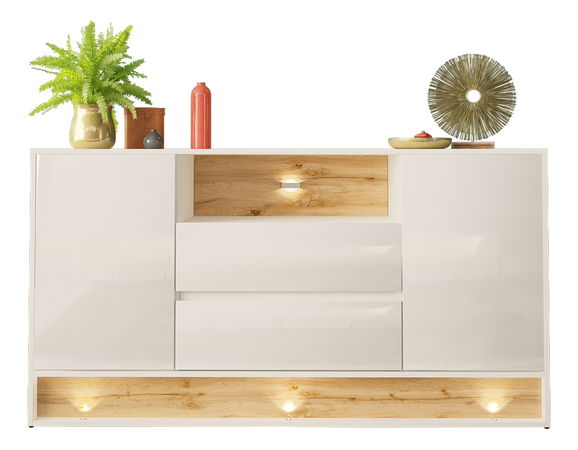ZobrazitVitrína Gallina 160 (bílá) o výšce 85 cm, šířce 160 cm a hloubce 40 cm je moderní třídílnou komodou, která Vám umožní uspořádat Vaše oblečení tak, abyste měli vše přehledně seřazeno. Skříňky jsou vybaveny poličkami, které poskytují dostatek úložného prostoru. Na vrcholu komody si můžete vystavit dekorativní předměty, lampičku nebo vázu s květinami. S touto bílou vitrínou bude Váš domov nejen praktický, ale také elegantní.