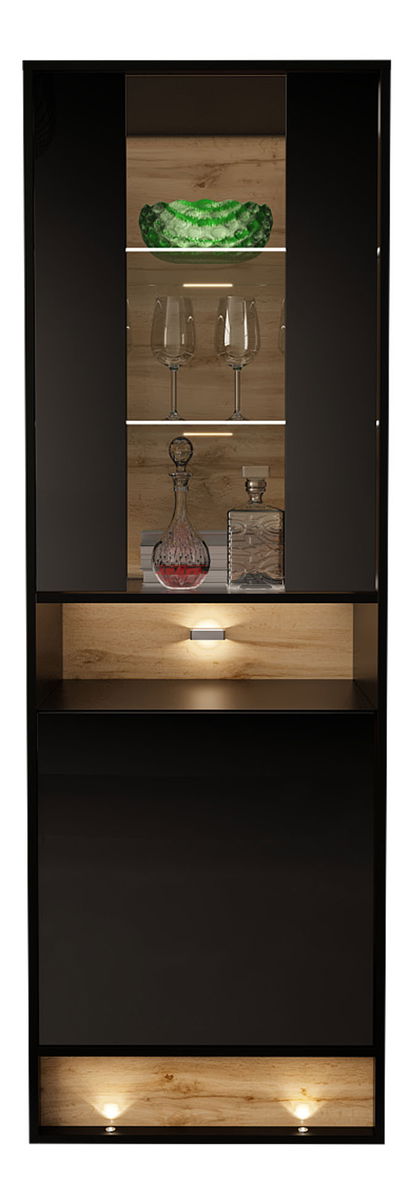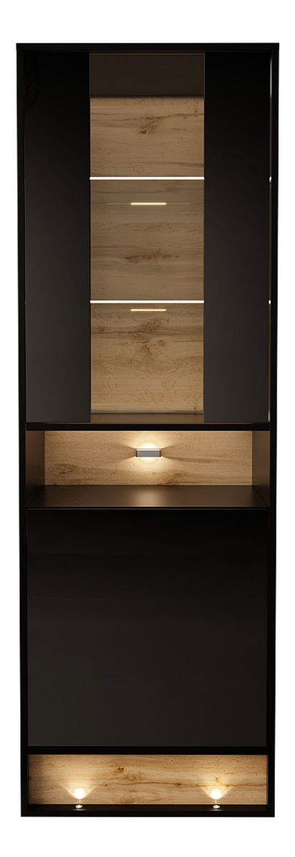Vitrína Gallina 60 (černá) o výšce 180 cm, šířce 60 cm a hloubce 40 cm je moderní třídílná komoda, která Vám poskytne dostatek prostoru pro uspořádání oblečení. Černá lesklá barva dodává komodě stylový vzhled. Skříňky s poličkami poskytují dostatek úložného prostoru a na vršek komody se můžete rozhodnout umístit dekorativní předměty, lampičku nebo vázu s květinami. Díky tomu se stane centrem pozornosti v místnosti a zároveň vám pomůže udržet pořádek.