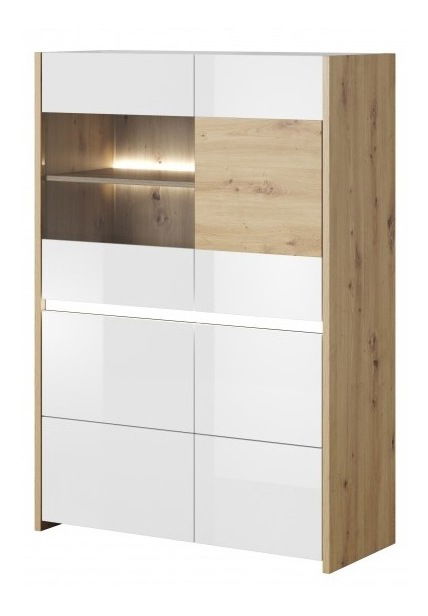 Vitrína Gubi 04 (dub artisan + bílý lesk)