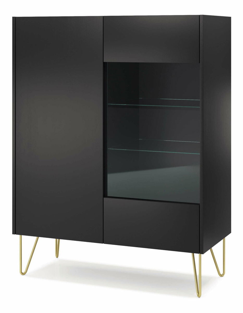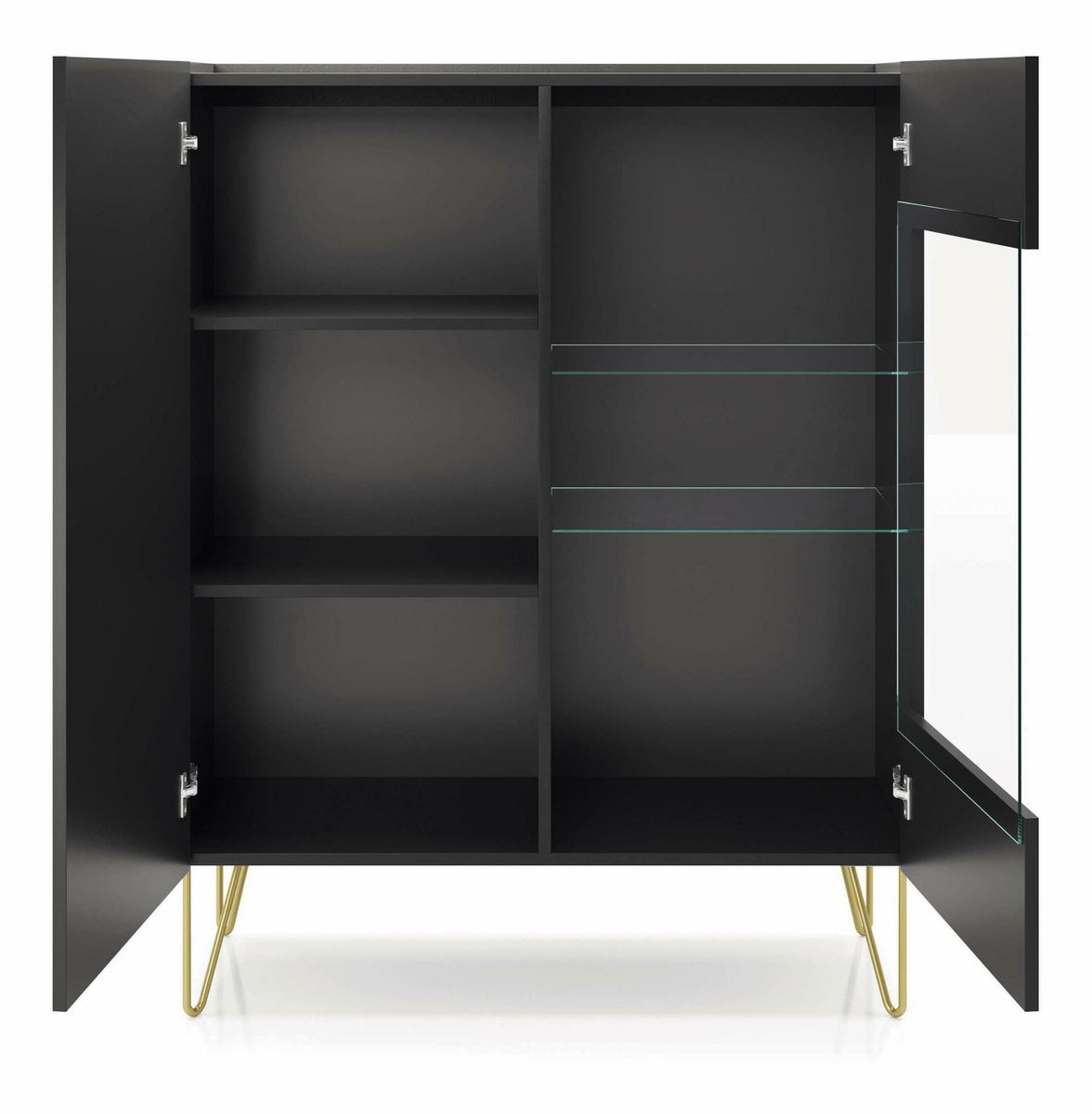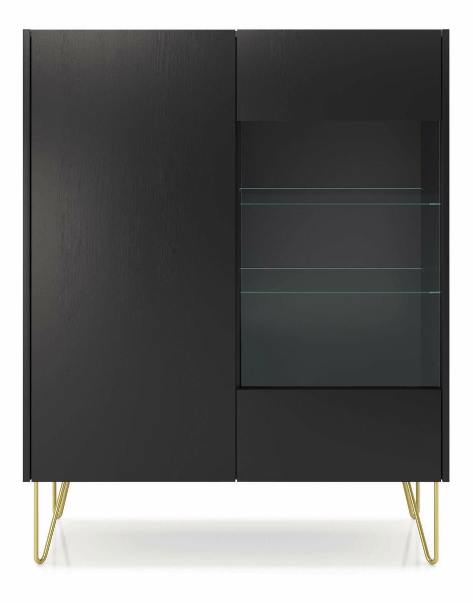 Vitrína Harvest WT97 (grafit černý + mramor black royal + zlatá)