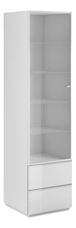 Moderní vitrína s prosklenými dvířkami a dvěma zásuvkami ve spodní části. Úložný prostor je rozdělen policemi. Elegance, lesk a moderní design najdete v série Henry. Nabízíme v trojím provedení bílá, šedá a černá. Vhodné do malých i velkých prostor. Nabízíme k dokoupení LED osvětlení.