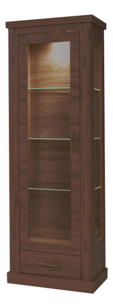 Vitrína Hilyn AR2 je ideální pro ty, kdo hledají praktické a stylové řešení pro své domácí vybavení. S výškou 198 cm a hloubkou 39 cm nabízí dostatek místa na uskladnění vašich oblíbených věcí a doplňků. Vitrína je vyrobena z DTD laminované desky s ABS hranami a má tloušťku materiálu 50 mm. Barva dub stirling přidává do interiéru příjemný rustikální šarm. Kovové úchyty přidávají ke vzhledu vitríny moderní nádech. Vitrína obsahuje šuplík, police a ABS hrany. Dodává se v demontu a bez LED osvětlení, což umožňuje jednoduchou montáž a přizpůsobení dle potřeb. 3D efekt výrazně zvýrazňuje krásu dubové rustikální desky. Pokud hledáte vitrínu vysokou na kvalitu a design, Vitrína Hilyn AR2 je pro vás tou správnou volbou.