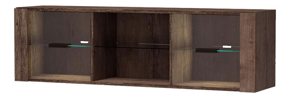 ZobrazitVitrína Indie 21 (jasan tmavý) o výšce 40 cm, šířce 138 cm a hloubce 30 cm je závěsná vitrína z kolekce Indie, která dokonale zapadne do každé místnosti a doplní ji svým moderním vzhledem. S jednoduchým a elegantním designem, vitrína má skleněná dvířka a police, díky kterým je úžasným místem pro uspořádání a vystavení vašich oblíbených předmětů. Regál má kovové úchyty, které dodávají vitríně industriální vzhled. Vitrína také nabízí možnost uchycení LED osvětlení, čímž se vaše uložené předměty stanou skutečnými klenoty a přilákají pozornost každého návštěvníka. Vyberte si tento stylový a praktický kus nábytku pro svoji domácnost.
