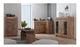 Luxusní sektorový nábytek vysoké kvality v masivním designu s prvky surového malovaného dřeva a výraznou reliéfní kresbou, s efektivním LED podsvícením, vhodný na zařízení obývacích pokojů a jídelen, korpus hrubý až 48 mm, úchyty kovové. Možnost dokoupení LED osvětlení. Materiál: DTD laminovaná, ABS hrany