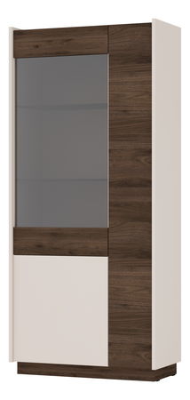 Vitrína - Kabal I (béžová + ořech tmavý) je elegantním řešením pro každý moderní obývací pokoj. Je vyrobena z laminované desky a HDF o tloušťce 16 mm a zadní stěnou 2,5 mm, což konstrukci dodává odolnost a stabilitu. Má 3 dvířka se systémem otevírání Push-to-open, což zaručuje snadný přístup a moderní vzhled. Skvělá volba pro váš interiér.