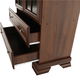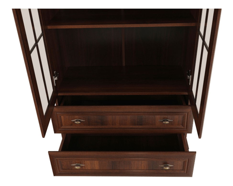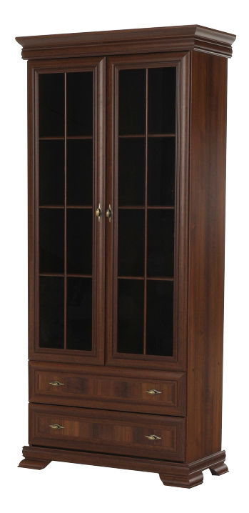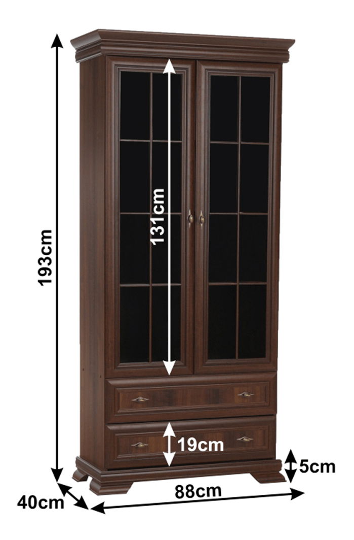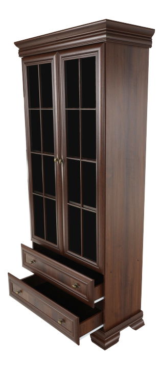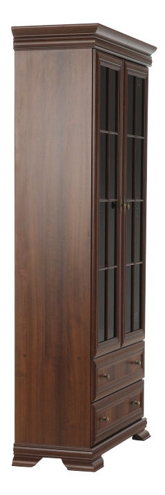 Vysoká dvoudveřová vitrína Kraz rustikálního stylu. Má prosklená dvířka a dvě zásuvky ve spodní části. Vitrína má hnědé sklo. Je vhodná do obýváků, ložnic nebo pracoven. Zalíbí se všem, kteří touží po tradičnějším vzhledu nábytku. Elegantní vitrína je v provedení Samoa king.