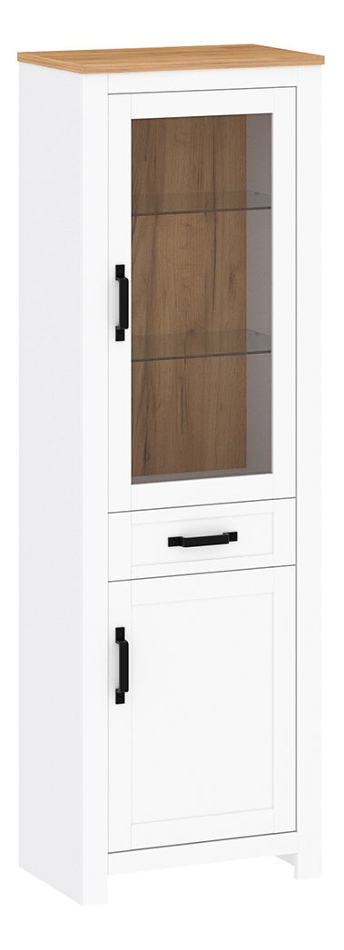 Vitrína Lanuelle je ideálním řešením pro ty, kdo hledají kvalitní a elegantní kus nábytku do svého interiéru. Její bílá barva a zlaté úchyty vytváří moderní vzhled, který se hodí do každé místnosti. Vitrína je vyrobena z DTD laminovaného materiálu s ABS hranami, což zajišťuje její pevnost a odolnost. S výškou 200 cm a hloubkou 40,7 cm poskytuje dostatek prostoru pro uskladnění různých předmětů. Skleněná dvířka umožňují volný výhled na obsah vitríny. Korpus vitríny má tloušťku 16 mm, vrchní deska 22 mm a dvířka 19 mm. Výška spodního prostoru od podlahy je 7,2 cm. Vitrína je univerzální s dvoudveřovým provedením a dodává se v demontu. Zásuvka poskytuje další prostor pro uskladnění různých předmětů. Vitrína není vybavena LED osvětlením, takže si můžete vybrat osvětlení dle vlastního vkusu.