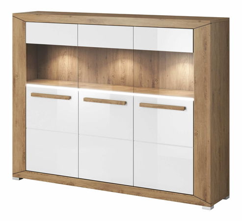 Vitrína Laurie Typ 46 (dub Beaufort + bílý lesk)