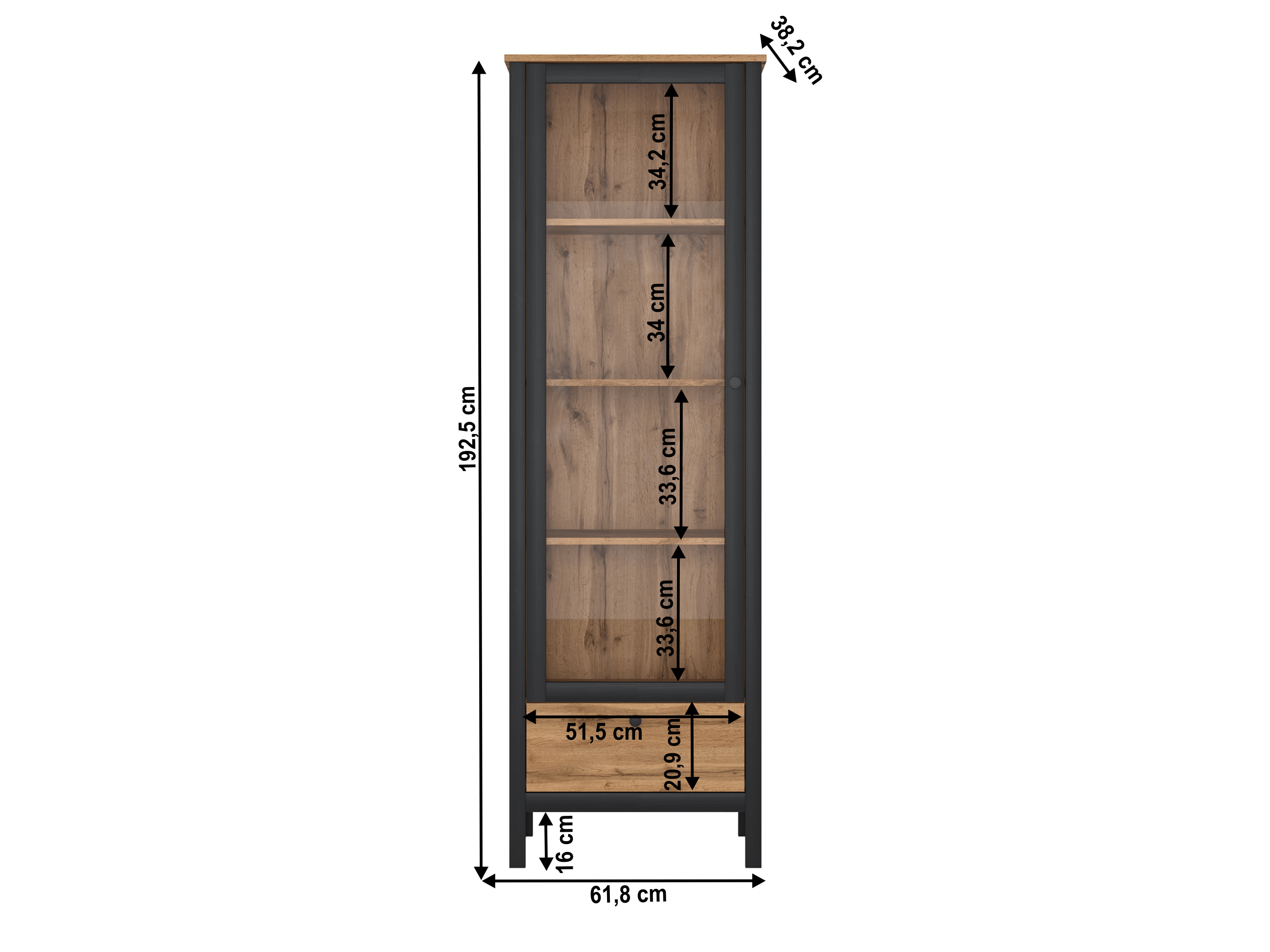 Vitrína Lorcan 1w1s (dub wotan + černá)