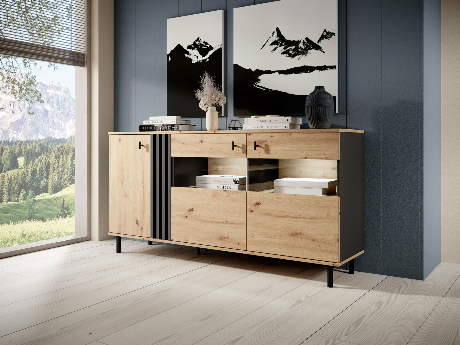 Vitrína Madeira 3D (dub artisan + černý antracit)