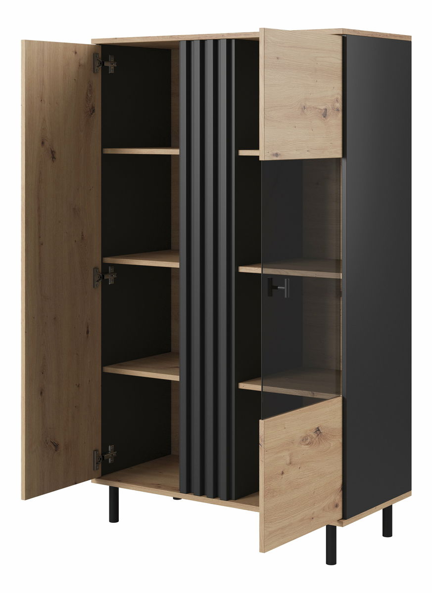 ZobrazitMADEIRA je sada v módních barvách přírodního dubu v kombinaci s kontrastní antracitovou. Jemné použití lamel zapadá do moderních designových trendů a zdůrazňuje charakter jednotek. Nestandardní úchyty upevněné vertikální a černé kovové nožičky dodávají nábytku lehkost. Kolekce určená pro všechny, kdo hledají netradiční design, který dodá interiéru úžasný, originální vzhled.