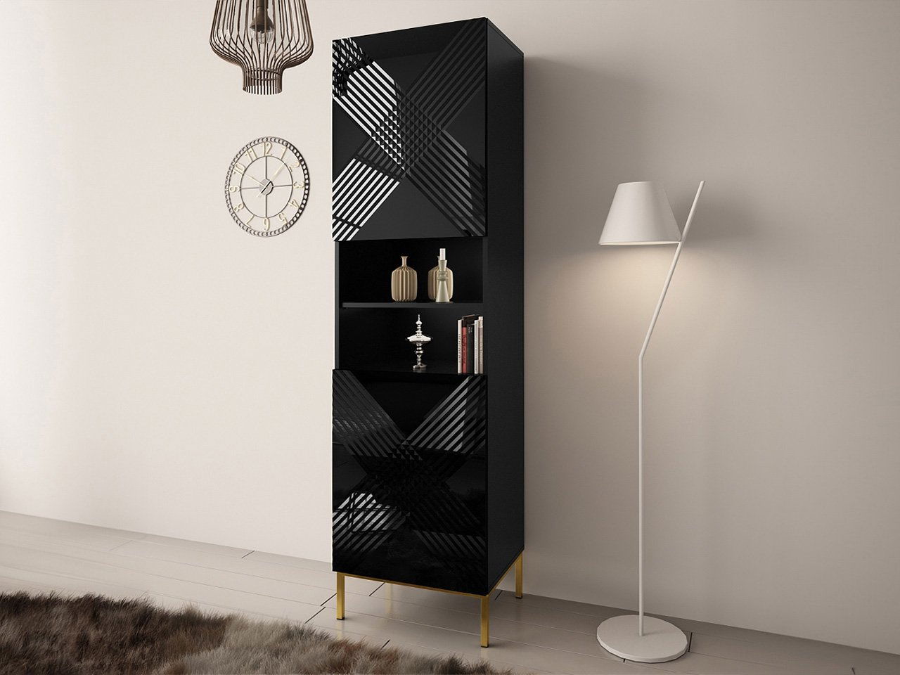 Vitrína Madrealla 200 (černá + lesk černý + zlatá)