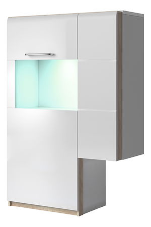 Vitrína Melia Typ 34 (bílá + dub sonoma světla + bílý vysoký lesk)