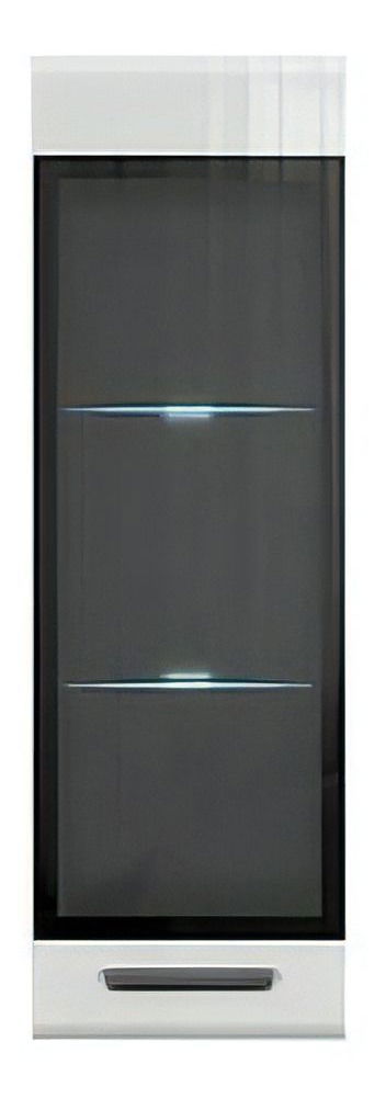 ZobrazitÚzká závěsná vitrína se dvěma skleněnými policemi nabízí prostor pro vystavení různých ozdobných sklenic, porcelánu nebo jiné dekorace. Vitrína má jedny skleněné dveře a pro vysokou úroveň komfortu je vybavena tichým zavíráním dvířek. Barevné provedení je v bílém lesku s černým rámem, díky kterému vypadá na první pohled čistě a elegantně. Vitrínu můžete kombinovat s dalším nábytkem z modelové řady Assen. Materiál: Nábytková doska.