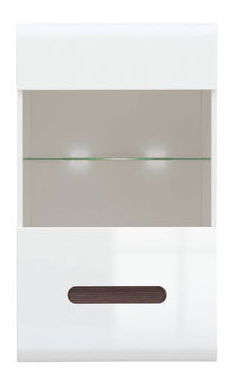 Vitrína na stěnu SFW1W_10_6 je v elegantním a moderním provedení podle nejnovějších designových trendů. Luxusní vzhled dotváří použité barevné provedení v bílé lesklé barvě nebo v barvě dubového dřeva. Vitrína má 3 poličky a dvířka jsou prosklené, vitrína je osvětlena, což dotváří efektní vzhled vitríny.