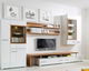 Chcete-li moderně vypadající obývací pokoj, nábytek Dolomit je ten pravý. Neutrální bílé barevné provedení v lesku je doplněno o barvu dřeva ořech baltimor se zajímavou kresbou. Úchyty a šedé nožičky dokonale doplňují celkový design nábytku. Prosklené části vitrín mají čirésklo a efektní osvětlení.