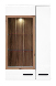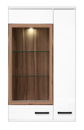 Vitrína na zeď s dvěma dvířky, přičemž jedny jsou zčásti prosklené. Prosklená část obsahuje dvě skleněné poličky a osvětlení vnitřního prostoru.