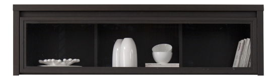 Vitrína na zeď pěkného moderního designu, která bude skvělým doplňkem vašich obývacích pokojů, pracoven nebo jídelen. Je předělena dvěma svislými příčkami na tři části, do kterých si můžete umístit dekorace, porcelán nebo oblíbené knížky. Vitrína má výklopná dvířka.