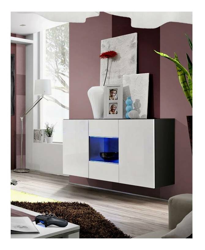 Vitrína na zeď Fritz 23 ZW FY SBII (s osvětlením) o výšce 70 cm a hloubce 40 cm v černé barvě s lesklým bílým povrchem je ideální pro moderní interiéry a skvěle se hodí k modelové řadě Fly. Vitrína se skládá ze tří částí, přičemž boční části mají uzavíratelné dveře a poličky. Střední část má dvě skleněné poličky se skleněnými dvířky a se dvěma LED osvětlením. Všechna dvířka mají systém otevírání bez potřeby tahu rukojeti - stačí jemně zmáčknout na dvířka pro otevření a následné opětovné zavření. Všechny přední plochy jsou vyrobeny ve vysokém lesku. Rozměry balíku 1 jsou 127x42x18 cm/43 kg.