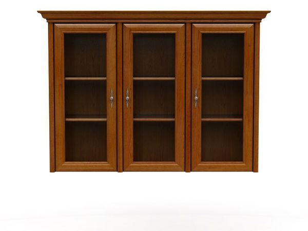 Široká vitrína pěkného rustikálního stylu, která bude opravdovým skvostem ve vašich obývacích pokojích nebo jídelnách. Vyřezávané vrchní lišty a jemné kované úchyty jí dodávají eleganci. Vitrína má troje dvířka a poličky pro všechny vaše oblíbené dekorativní předměty, porcelánové soupravy, knihy či jiné doplňky.