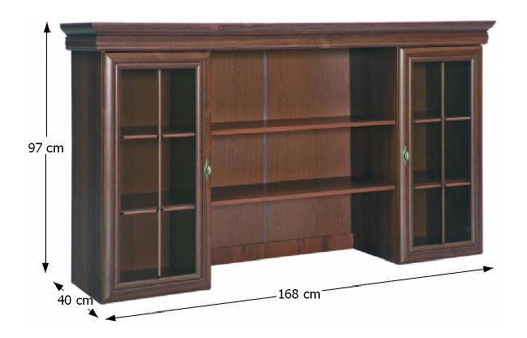 Nástavba Kraz KN5 výšky 97 cm a hloubky 40 cm je ideálním doplňkem pro komodu Kraz KK4. Tato masivní nástavba disponuje dvojicí prosklených dvířek a policemi. Barevné provedení v Samoa king barvě dodává nástavbě kouzlo a styl. Sektorová modelová řada nábytku Kraz je dokonalou volbou pro všechny, kteří se rádi obklopují rustikálním a tradičním nábytkem. Nábytek Kraz je elegantní, masivní a disponuje spoustou prvků, jako ozdobné lišty, kovové úchyty, skříně, skříňky a stolky. Tato nástavba je vyrobena z laminované DTD, MDF a kovu a dodává se v demontu. Rozměry nástavby jsou 168x40x97 cm a tloušťka materiálu korpusu je 15 mm, zatímco vrchní a dolní desky mají tloušťku 22 mm. Vyberte si tuto nástavbu a zvolte vyšší, elegantnější a tradičnější nábytek pro vaši domácnost.