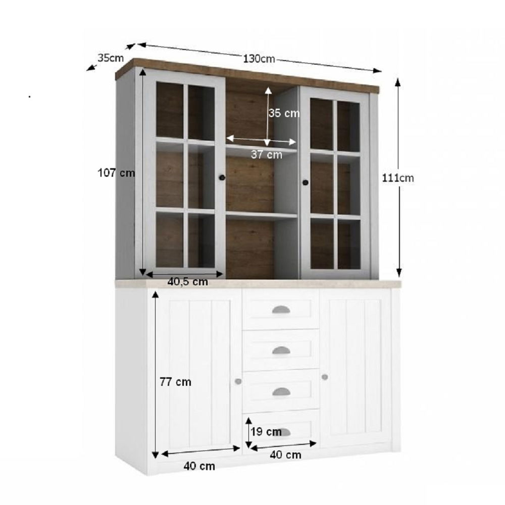 Vitrína Provense W2D je dokonalým řešením pro ty, kteří hledají kvalitní a praktické úložné řešení pro svůj domov. Nástavba vitríny je vyrobena z kvalitního laminovaného materiálu DTD/sklo. S kombinací sosny andersen a dubu lefkas získáte jedinečný kousek nábytku, který se bude hodit do každého interiéru. S rozměry 130x111x35 cm a tloušťkou materiálu korpusu 15 mm a vrchní desky 36 mm, je tato vitrína dostatečně velká pro uskladnění předmětů různých velikostí. Produkt je dodáván v demontu, ale díky jednoduchému sestavení budete mít svoji novou vitrínu připravenou k použití během chvíle.