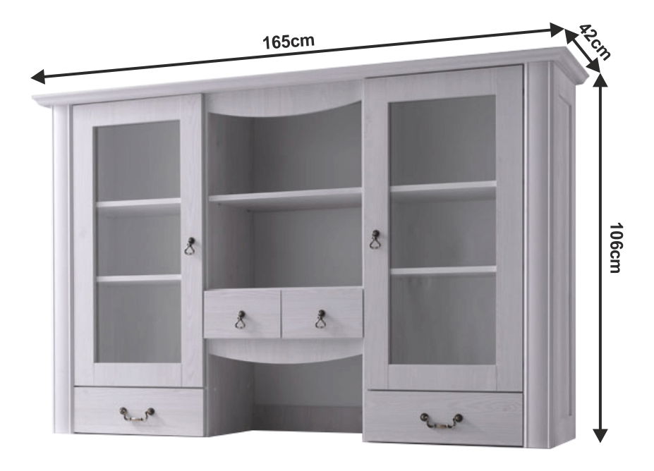 Vitrína (nástavba) Valiara DA18 (bílá) je kus nábytku, který se vyjímá svou vysokou kvalitou a stylovým designem. S výškou 106 cm a hloubkou 42 cm, je tato bílá vitrína vyrobena z DTD laminované desky o 30 mm tloušťce, která vydrží dlouhá léta používání. Sosna bílá barva a ABS hrany dodávají vitríně moderní a elegantní nádech. Vitrína má dvě skříňky, čtyři šuplíky a otevřené police, což umožňuje uložení rozmanitých věcí. Díky 3D efektu se tato vitrína hodí skoro do každého interiéru. Kovové úchyty a ABS hrany dokonale doplňují celkový design vitríny. Vitrína (nástavba) Valiara DA18 (bílá) je tím správným nábytkem pro ty, kteří hledají zajímavý a praktický doplněk do svého domova.