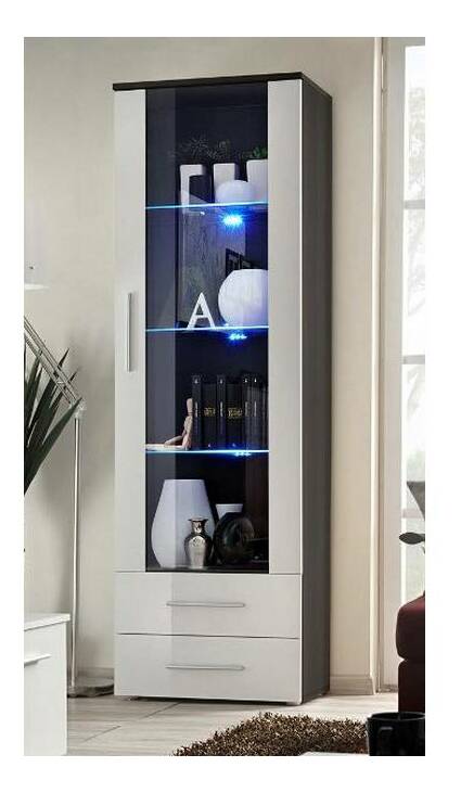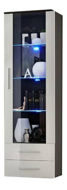 ZobrazitVitrína Nelia 23 EMWH N1 s osvětlením je vysoká 190 cm a hluboká 40 cm. Je dostupná v odstínech Wenge a lesk bílý. Tato vitrína je ideálním doplňkem pro každý interiér, ať už je to obývací pokoj, pracovna nebo kancelář. V dolní části jsou dvě zásuvky s úchyty dlouhými 25 cm. Nad nimi se nachází uzavřený prostor se třemi skleněnými poličkami za prosklenými dvířky. Všechny poličky jsou podsvíceny LED osvětlením, což zvyšuje jejich estetický efekt. Dvířka jsou univerzální a mohou být namontována na obou stranách s volbou levého nebo pravého otevírání. Vitrína je dostupná v různých barvách, což umožňuje zkombinovat ji s jiným nábytkem v místnosti. Rozměry balíků odpovídají 198x65x9 cm/37 kg pro první balík, 156x65x3 cm/12 kg pro druhý balík a 68x21x5 cm/3 kg pro třetí balík.