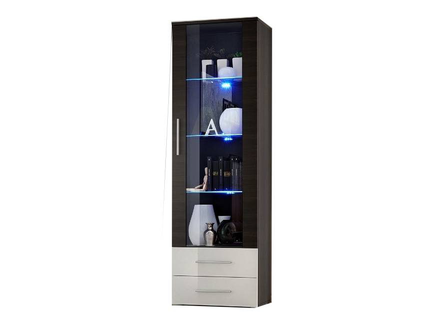 Vitrína Nelia 23 WWH N1 (s osvětlením) o výšce 190 cm a hloubce 40 cm je bílá s leskem bílým a ideální doplňkovou součástí každého pokoje. Ve spodní části se nacházejí dvě zásuvky a horní část je uzavřena prosklenými dvířky se třemi skleněnými poličkami, které jsou podsvíceny LED osvětlením pro zvýraznění efektu. Dveřní úchyty a úchyty zásuvek jsou dlouhé 25 cm. Vitrína je k dispozici v několika barevných provedeních, aby se mohla zkombinovat s ostatním nábytkem v místnosti. Dvířka jsou univerzální s možností montáže na obou stranách a možností volby levého nebo pravého otevírání. Rozměry balíku 1 jsou 198x65x9 cm a váží 37 kg. Rozměry balíku 2 jsou 156x65x3 cm a váží 12 kg. Rozměry balíku 3 jsou 68x21x5 cm a váží 3 kg.