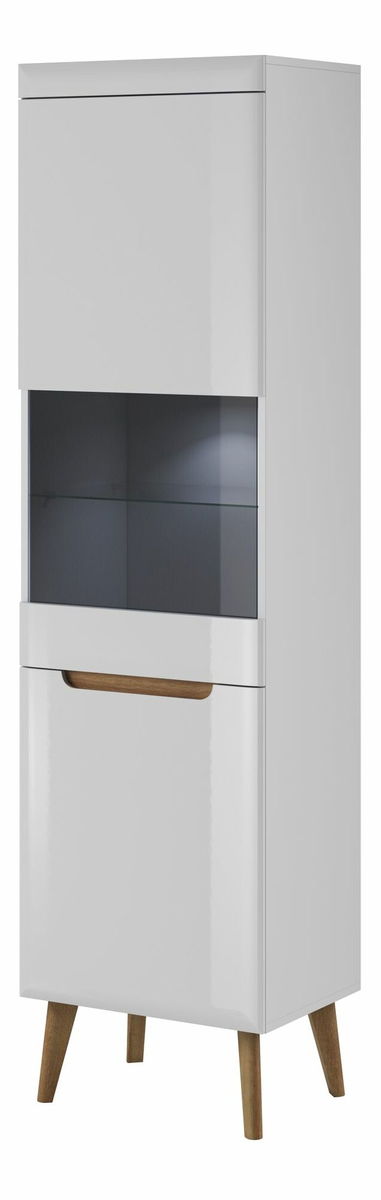 ZobrazitÚzká vitrína má zasklené pouze horní dvířka, spodní jsou plné a tak se dá využít i jako skříňka na odkládání různých drobností. Skleněné poličky mají LED podsvícení čím je jen zvýrazněn stylový design vitríny a zároveň tím dávají vyniknout dekoracím ve vitríně. Nezískáte tak pouze skříňku s vitrínou, ale také velmi decentní a příjemné osvětlení v místnosti. Led osvětlení si umíte dokoupit za doplatek.