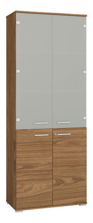 Vitrína má dvoje dvířka prosklená matným sklem a dvoje ve spodní části, které ukrývají poličku. Desky jsou z lamina nejvyšší kvality a jednu zásuvku. Odolné vůči poškrábání, vlhkosti a vysokým teplotám. Hrany ABS mají dlouhou životnost, odolnost vůči oděru a estetický vzhled. Jsou odolné vůči vlhkosti, nedeformují se ani se neodlepují. Zámky jsou ve standardu. Dodáváme v demontu.