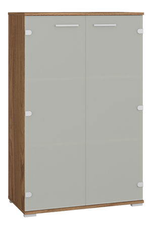 Vitrína má dvoje dvířka prosklená matným sklem a dvě poličky. Desky jsou z lamina nejvyšší kvality a jednu zásuvku. Odolné vůči poškrábání, vlhkosti a vysokým teplotám. Hrany ABS mají dlouhou životnost, odolnost vůči oděru a estetický vzhled. Jsou odolné vůči vlhkosti, nedeformují se ani se neodlepují. Zámky jsou ve standardu. Dodáváme v demontu.