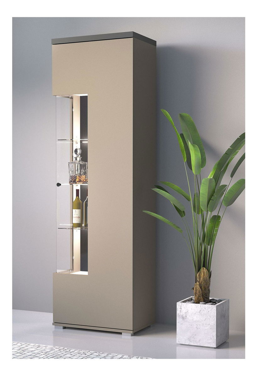 ZobrazitVitrína - Orsire (congo + antracit) (P) - Elegantní doplněk i pro Váš interiér! S rozměry 180 x 55 x 36 cm vám vitrína poskytne spoustu úložného prostoru a prosklená část umožní vystavit dekorativní předměty. Vitrínu lze osvětlit s pomocí LED osvětlení Amalba 51.