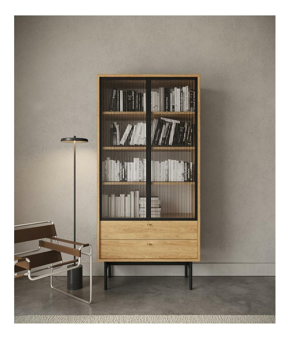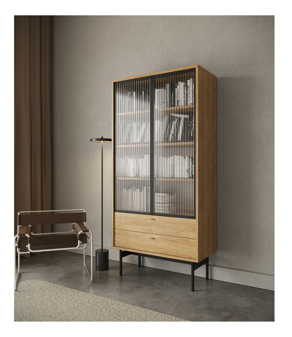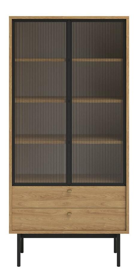 ZobrazitChcete změnit vzhled vašeho interiéru? Výběrem naší kolekce potěšíte své hosty tím, že vnesete do svého obývacího pokoje jedinečné uspořádání, zdůrazňující jemnost, eleganci a zároveň harmonii. Vitrína s jedinečným designem v teplé barvě dokonale zapadne do moderního interiéru. Je vyroben z kvalitní laminované dřevotřískové desky, která zajišťuje dlouhodobé a bezproblémové používání. Jeho charakter obohacuje pevný rám z černé oceli, který činí nábytek nejen odolným, ale dodává mu i industriální šarm. Rafinovaný detail v podobě zlatých úchytek je zase nejen praktickým prvkem, který usnadňuje otevírání, ale dodává celé skříňce také jemný lesk. Vitrína byla navržena s ohledem na funkčnost, proto má dvě zásuvky na menší předměty a část s policemi na dekorace, rodinné suvenýry nebo mini knihovnu, uzavřenou za drážkovaným ozdobným sklem. Přírodní hikor, jemně zvýrazňující teplo a přirozenost dřeva, v kombinaci s černým rámem a zlatými úchyty dodává interiéru jemný, ale rafinovaný charakter. Tento kus nábytku je nejen praktickým úložným řešením, ale také designovým prvkem, který zdůrazní individuální styl každé místnosti. Kolekce - vyberte si dokonalost do svého interiéru ještě dnes Detaily produktu: korpus a čela z přírodní hikorové laminované desky H3730 ST10, rám z černé prášek lakované oceli, která usnadňuje udržování pořádku pod nábytkem, rozměry police: výška 28,5! cm x hloubka 37 cm, rukojeti zlaté barvy z broušené oceli.