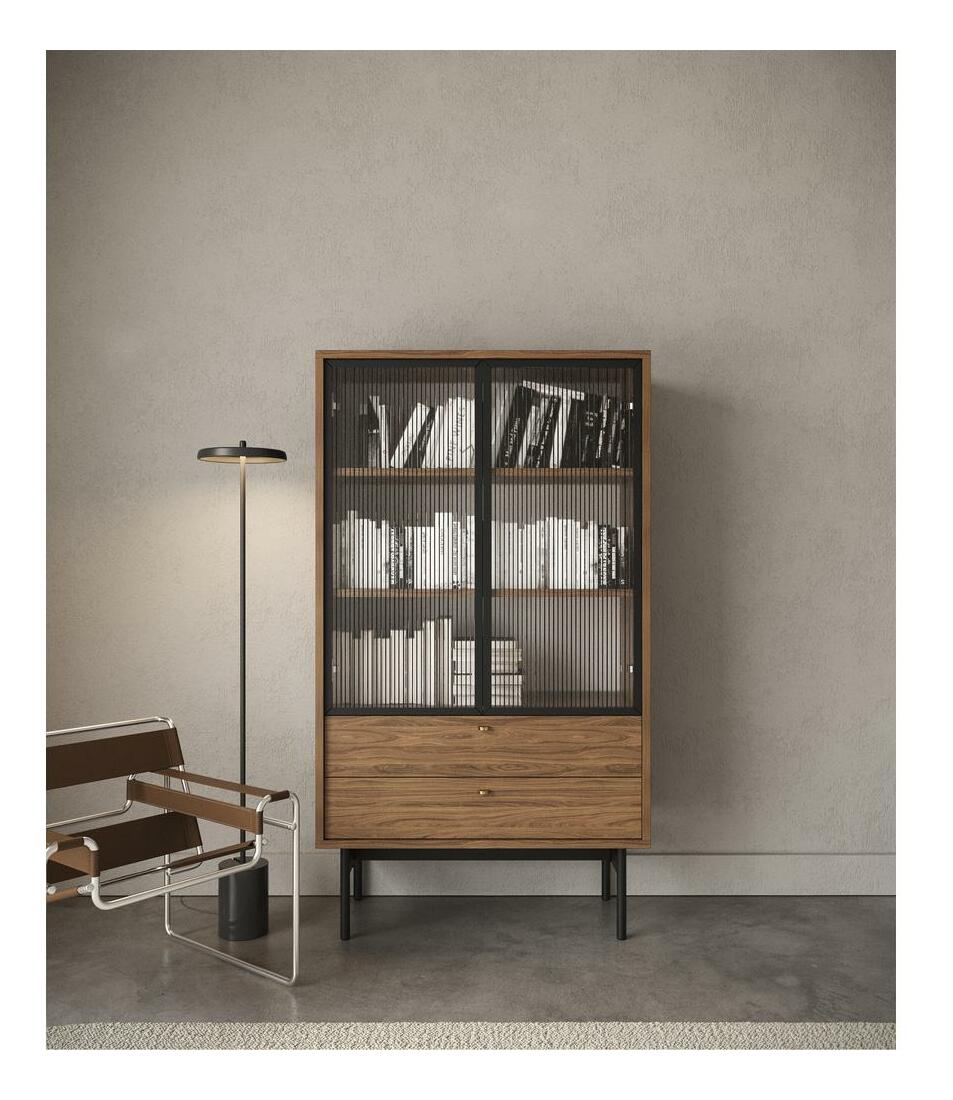 ZobrazitChcete změnit vzhled vašeho interiéru? Výběrem naší kolekce potěšíte své hosty tím, že vnesete do svého obývacího pokoje jedinečné uspořádání, zdůrazňující jemnost, eleganci a zároveň harmonii. Vitrína s jedinečným designem v teplé barvě dokonale zapadne do moderního interiéru. Je vyroben z kvalitní laminované dřevotřískové desky, která zajišťuje dlouhodobé a bezproblémové používání. Jeho charakter obohacuje pevný rám z černé oceli, který činí nábytek nejen odolným, ale dodává mu i industriální šarm. Rafinovaný detail v podobě zlatých úchytek je zase nejen praktickým prvkem, který usnadňuje otevírání, ale dodává celé skříňce také jemný lesk. Vitrína byla navržena s ohledem na funkčnost, proto má dvě zásuvky na menší předměty a část s policemi na dekorace, rodinné suvenýry nebo mini knihovnu, uzavřenou za drážkovaným ozdobným sklem. Přírodní ořech Carini v kombinaci s černým rámem a zlatými úchyty dodává interiéru jemný, ale rafinovaný charakter. Tento kus nábytku je nejen praktickým úložným řešením, ale také designovým prvkem, který zdůrazní individuální styl každé místnosti. Kolekce - vyberte si dokonalost pro svůj interiér ještě dnes Detaily produktu: korpus a čela z laminované desky Ořech Natural Carini H3710 ST9, rám z černé prášek lakované oceli, která usnadňuje udržování pořádku pod nábytkem, rozměry police: výška! 28, 5 cm x hloubka 37 cm, rukojeti zlaté barvy z broušené oceli.