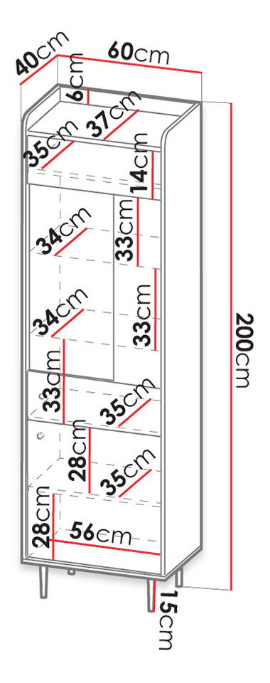 Univerzální vitrína je ideální volbou pro ty, kdo hledají pohodlí a styl. Rozměry: šířka: 60 cm, výška: 200 cm, hloubka: 40 cm Provedení: dřevotříska 16mm, ráfek: ABS (viditelná místa), papír (neviditelná místa), Zadní stěna: 3 mm HDF černá deska, kovové nohy a rukojeti, kalhotky s měkkým zavíráním skla, místo je univerzální - zákazník se rozhaření, na kterou stranu vrata bude mount při montáži, LED osvětlení jako doplňková možnost za příplatek Záruka: 24 měsíců
