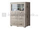 Nízká vitrína s prosklenou horní částí a se skleněnou poličkou. Dolní část má plná dvířka a klasickou poličku. Designové úchyty a barva dřeva san remo dodávají nábytku klasický charakter. Nábytek je postaven na decentních nožičkách.