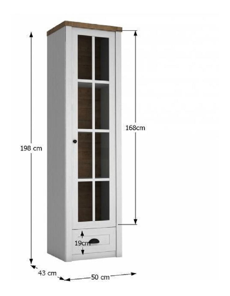 Vitrína Provense W1S výška 198 cm hloubka 43 cm Sosna andersen + Dub lefkas je ideální pro ty, kdo hledají kvalitní nábytek s elegancí a stylem. Materiál laminovaná DTD/sklo zaručuje dlouhou životnost výrobku a zabraňuje poškrábání. Rozměry vitríny 50x43x198 cm ji dělají dostatečně velkou pro uskladnění různých předmětů. Tloušťka materiálu korpusu je 15 mm a vrchní desky 36 mm, což zajišťuje stabilní konstrukci vitríny. Vitrína je dodávána v demontu, avšak její montáž je jednoduchá a rychlá. Tato vitrína bude dokonalým doplňkem vašeho interiéru a poskytne vám dostatek prostoru pro uskladnění vašich oblíbených předmětů.