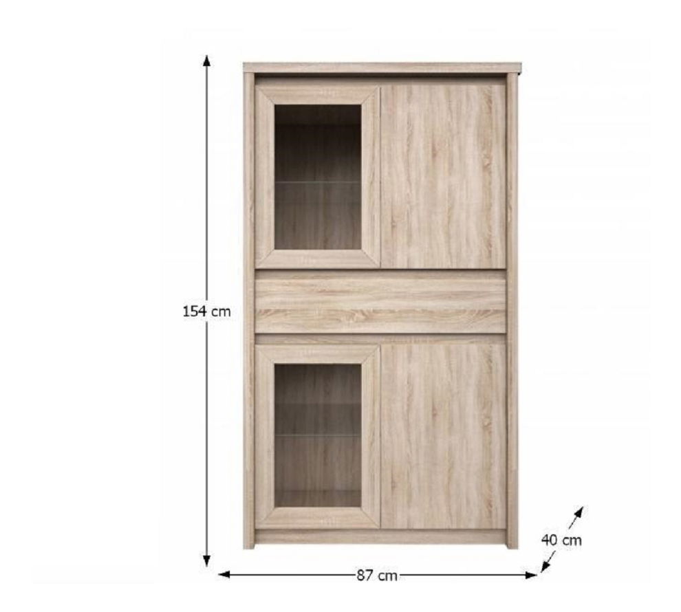 Tento výrobek s názvem Vitrína Rihana Typ 7 je ideálním doplňkem do vaší domácnosti. Má výšku 154 cm a hloubku 40 cm, což z ní činí dostatečně štíhlou a šikovnou pro každou místnost. Vitrína je vyrobena z DTD laminovaného materiálu a má provedení v dubu sonoma. Její rozměry jsou 87x40x154 cm a tloušťka materiálu je 32 mm. Zbývající části mají tloušťku 16 mm. Výrobek se dodává v demontu, což znamená, že je třeba jej smontovat, ale nebojte se, součástí je návod k sestavení. Vitrína Rihana Typ 7 je praktickým a efektivním řešením pro uspořádání a vystavení vašich oblíbených předmětů.