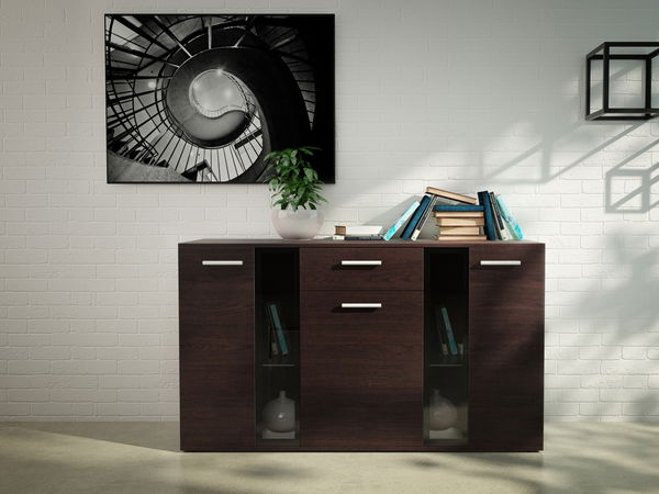 Designová vitrína z modelové řady Saul patří k těm co zaujme na první pohled. Vitrína je rozdělena na tři části a každá část obsahuje jednu poličku, přičemž levá a pravá polička je skleněná. Pro úplnou dokonalost doporučujeme dokoupit osvětlení z našeho e-shopu. Vitrína je dodávána v demontu.