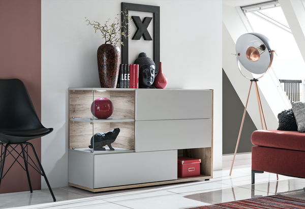 Vitrína Seghill 28 DWPG SKS (perlově šedá + dub wellington)
