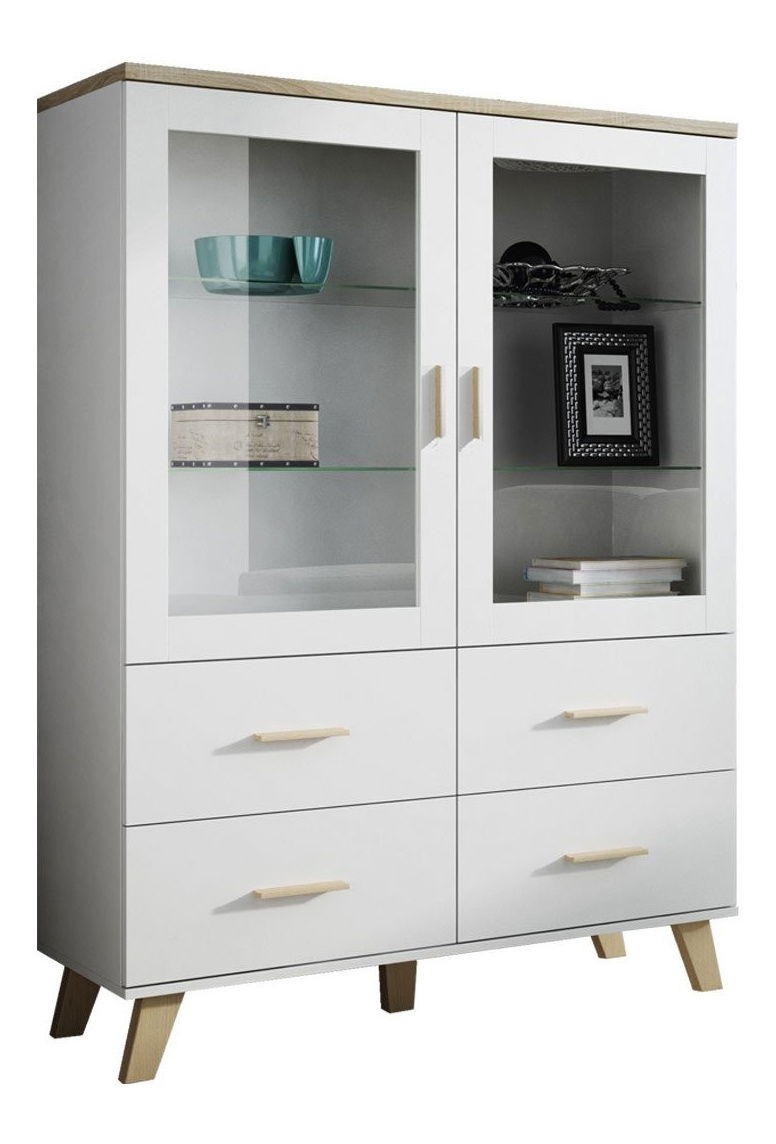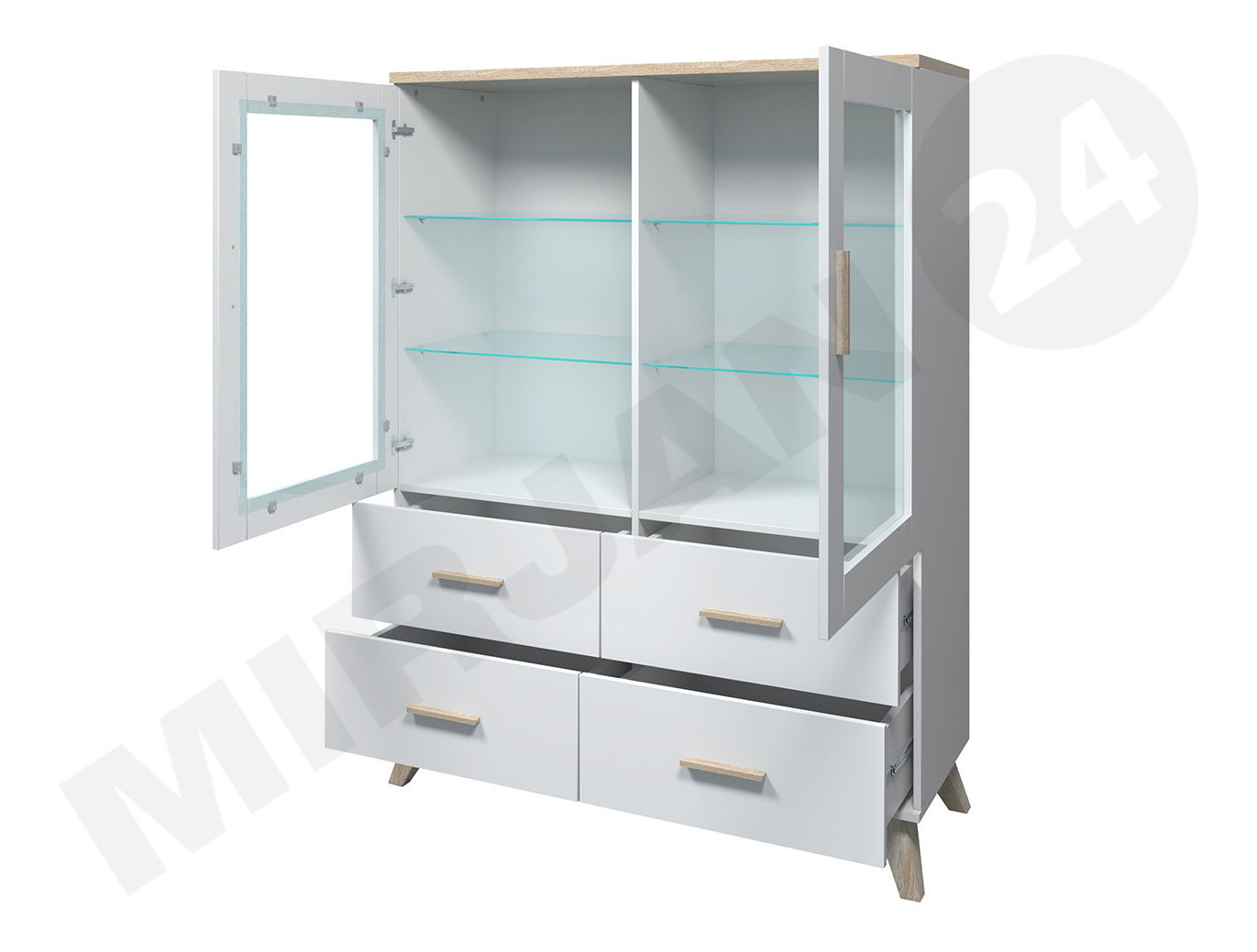 Vitrína Solara 2D4S (bílá + dub sonoma)